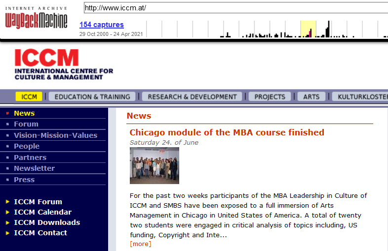 2005/06 | ICCM | Executive MBA International Arts Management | SMBS | Salzburg Kolleg St.Josef |