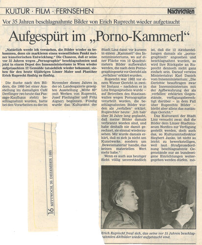- Weitaus umfangreichere Angaben (auch) zum Inhalt des Strafaktes erfolgen in der Publikation Der Fall Ruprecht: Dokumentation. Hrsg. Alfred Weidinger, OÖ. Landeskultur GmbH, 2021, ISBN 978-3-85474365-1, deren Lektüre bei weitergehendem Interesse empfohlen wird. Das angegebene Zitat betreffend die Rückerstattung der Bilder an den Künstler am 09.11.2000 erfolgt (dank der Zustimmung des Herausgebers) aus dieser Publikation und ist für das Gesamtverständnis notwendig.